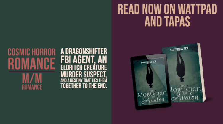 KR always has several projects on the go. This year Freedom’s Pyre and Freedom’s Ascension were finished, both part of the dark fantasy Libertas Series, as well as the contemporary romance The Accidental Prince which can be found as a Premium novel on Tapas.io. The Mortician of Avalon, a cosmic horror romance, will finish before the end of 2019, and two new books – Vee and Freedom’s Trial – are already being posted to Patreon! You can find all KR’s work on Tapas.io, and most of their work on Wattpad.